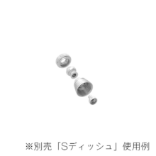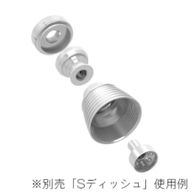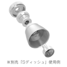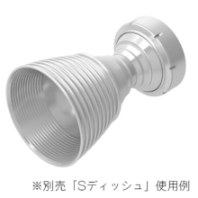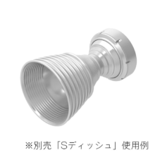 続いて、Sディッシュの単品画像と組み付け例。SディッシュはSXスラスターと、STDスラスターに取り付けできます。サイズがかなり小さいですが、プレートのようにレンズをはめ込んで使うこともできます。