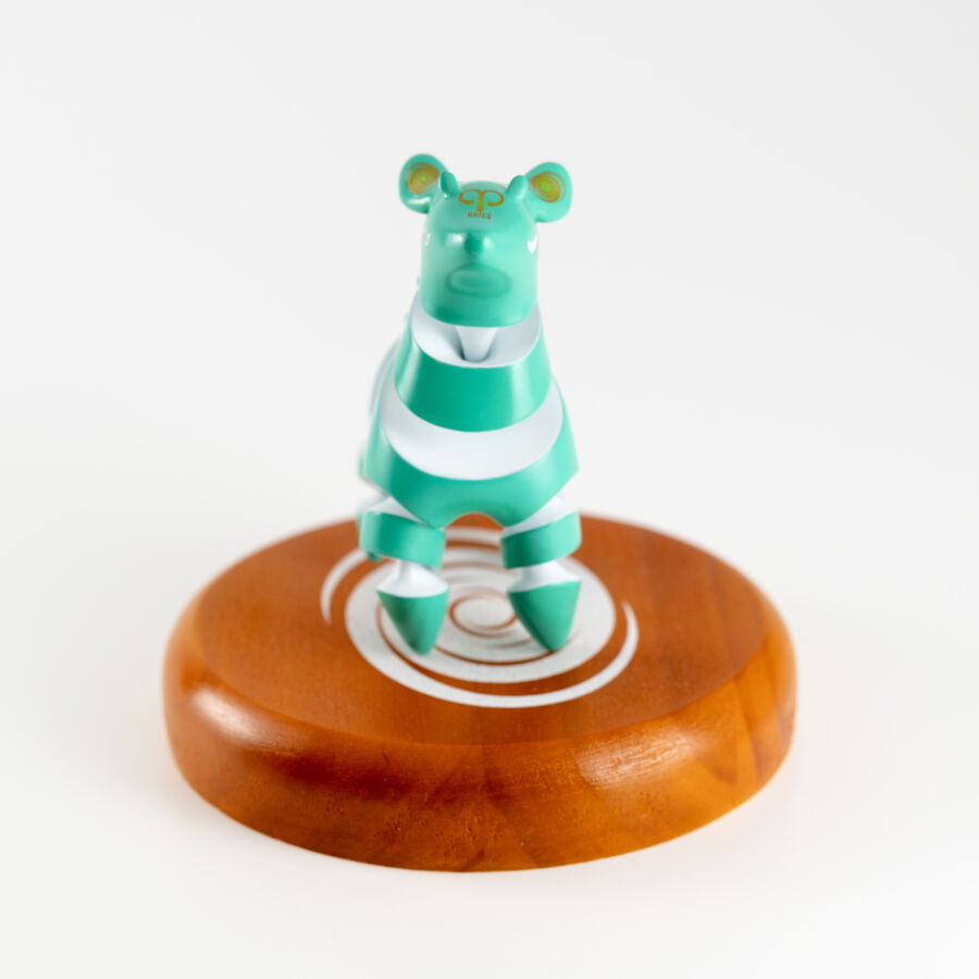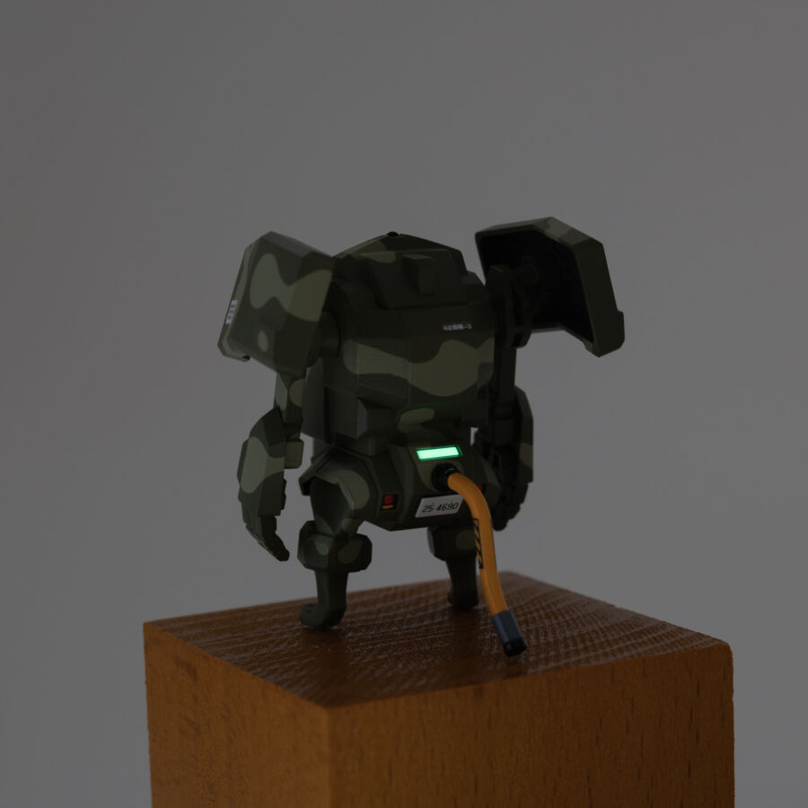 今回はデカールの試験体として作成。宇宙をイメージして、渦巻き型銀河のマークを耳に、星座のモチーフ(牡羊座)をおでこに貼り付けています。銀河と星座マークは、将来的になにかのデカール内に盛り込まれる予定です。