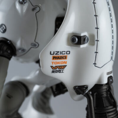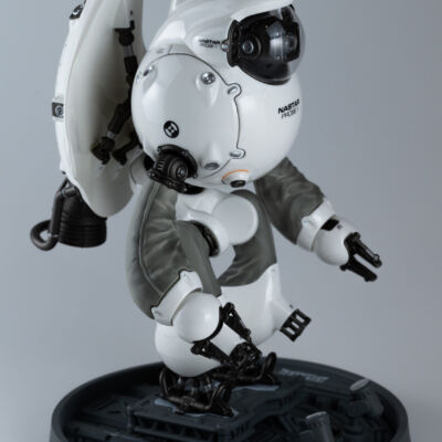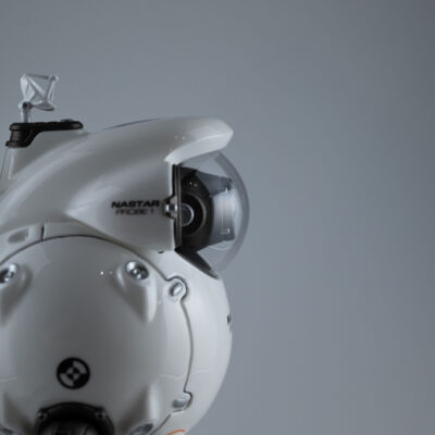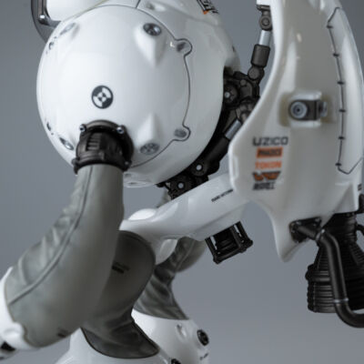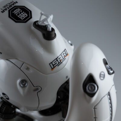 ヘルメットのカバーは3Dプリンタ出力品(クリアUVレジン)が付属します。#400~#1000のやすりで丁寧に磨き、ラッカークリアで仕上げると下の画像のように仕上がりになります。