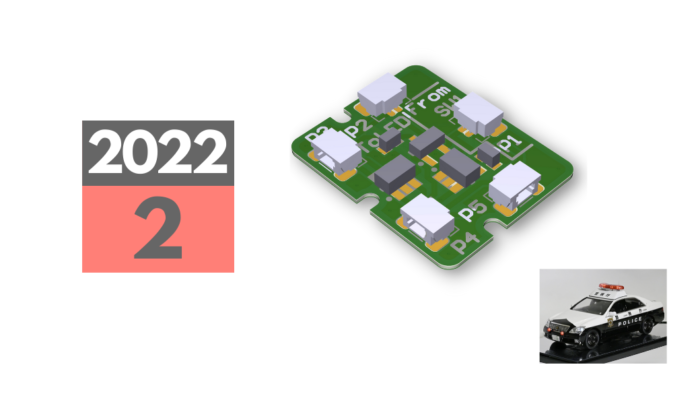 ブーメラン型・旧型赤色灯点滅用のプログラム入り基板2種を発売します。赤色灯の点滅間隔・交互点滅を再現したもので、パトロールカーの電飾工作に最適です。