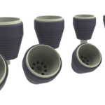 補足:BSバーニアは、低価格&二重構造をコンセプトとした、ベーシックな素材を目指したシリーズでした。そのため、2つのベルを組み合わせた時に中に隠れてしまう部分には彫刻を入れず、のっぺりとした形状をしています。今回のSTDスラスターもほぼ同じコンセプトです。単価は少し上がっていますが、よりインナーパーツに意匠を凝らし、価格とディテール密度のバランスを取っています。