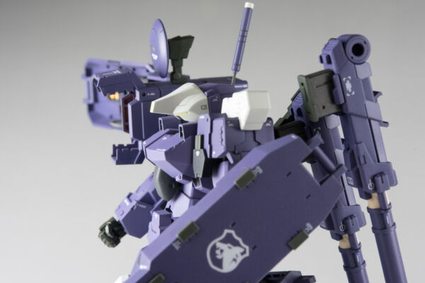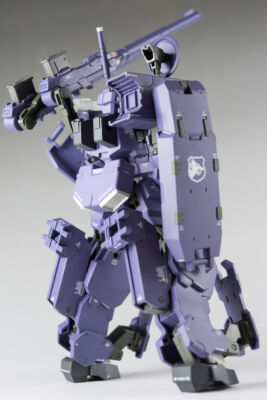 「轟雷」系で、特徴的なフェイスカバーに大型シールド、二連装キャノン砲を備えたマッチョなメカです。