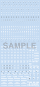 「RB(Rebirth)」アールビーと銘打った新しいコーションデカールシリーズに1/100スケールが追加。小型メカモデルに貼ってもスケール感を損ねない、小面積のマークを多数採用しています。マルチカラープリントで、アクセントカラーが細部を色分けをしたような精密感を生み出します。弊社の旧1/100シリーズより少し縮小してあります。