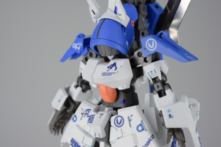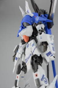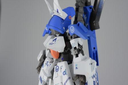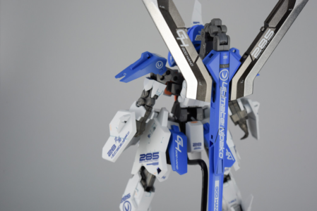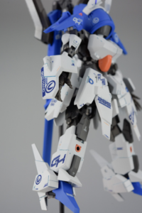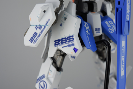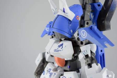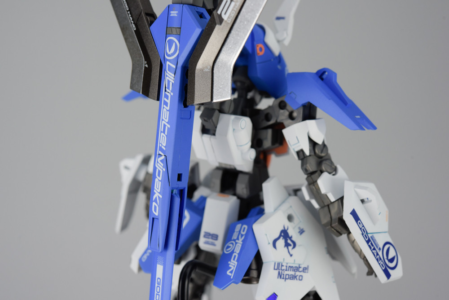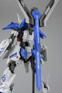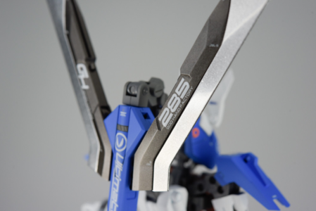 装甲にある青く光っている小さいパネルみたいなものは、黒いカッティングシートの上に、オーロラブルーシールを貼って切り出したものを、貼り付けています。