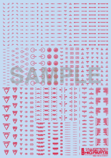 02にある基本素材部分。01の文字と、アクセントマークが変更になったのが上段左側。このサイズだと「X」に見えますが、センターにスペースが開いていてXではない4つの線の幾何学模様です。虫眼鏡とかで確認してください。ここが抜けて色が見えることで精密な印象がかなり上がります。右側4つは下段のデザインと共通する部分が多い新規の柄です。※Xも下でまた出ます