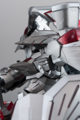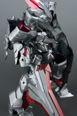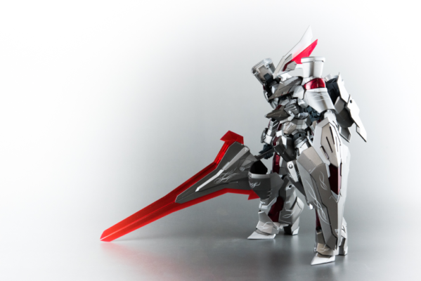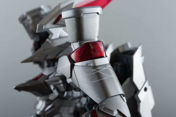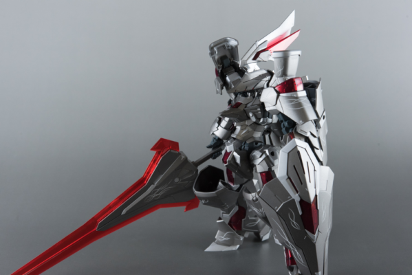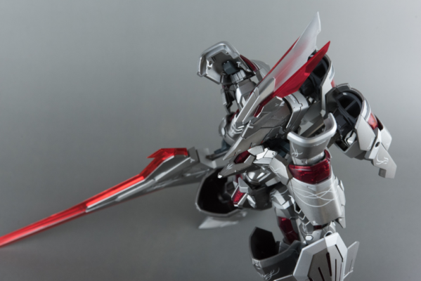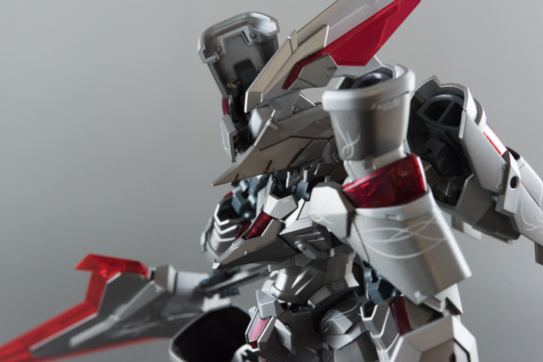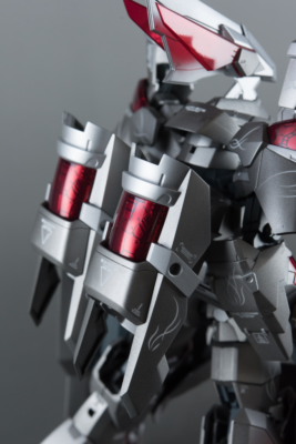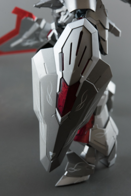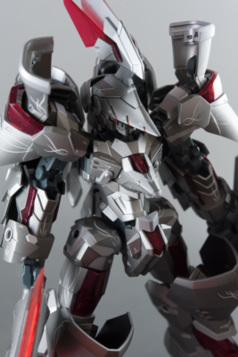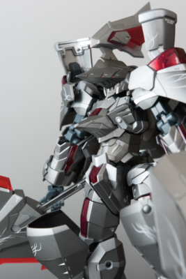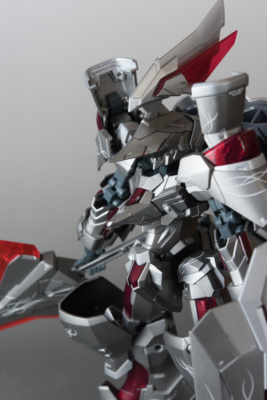 騎士-knight-をイメージして2種類の色味が違うシルバー(クレオススーパーアイアンと、シルバー)に塗装。クリアパーツは赤に統一しています。塗装で調整してすべてクリアレッドになるように変更しました。