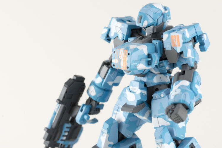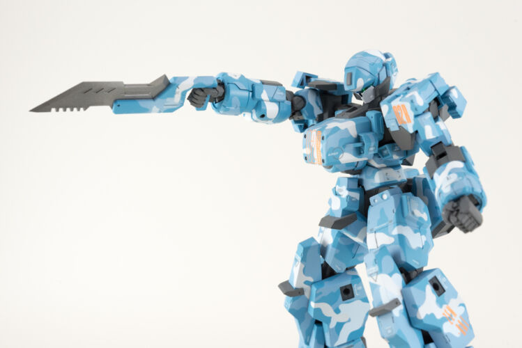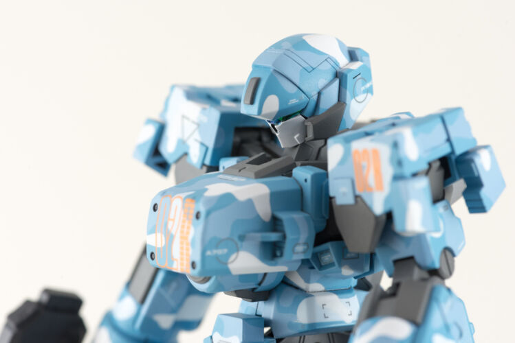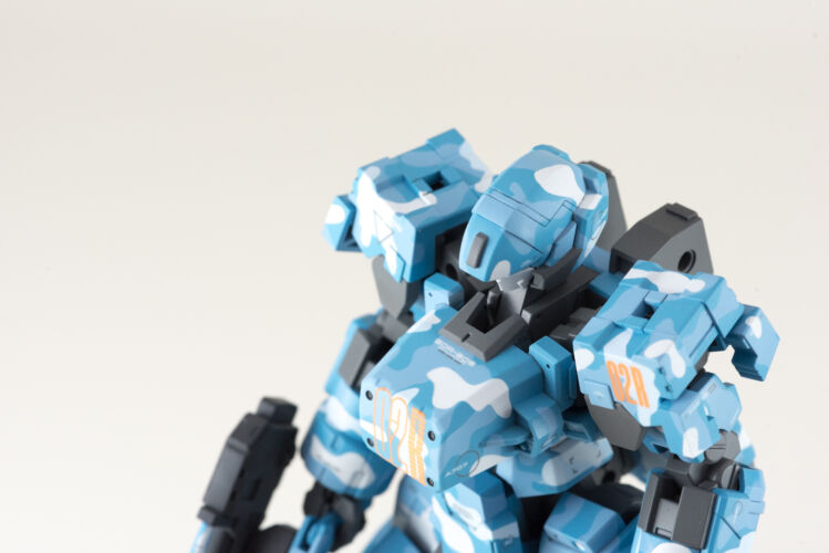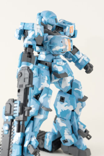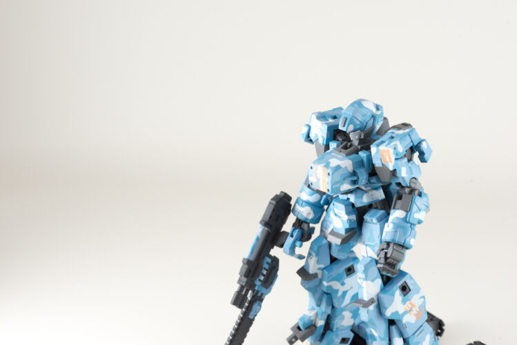 「漸雷」はコトブキヤ・フレームアームズシリーズの中ではかなり初期のキットになります。今回はリニューアルされた新しい方のキットを使って、クラウド迷彩塗装しました。白+青3色で海洋迷彩風の塗装しています。