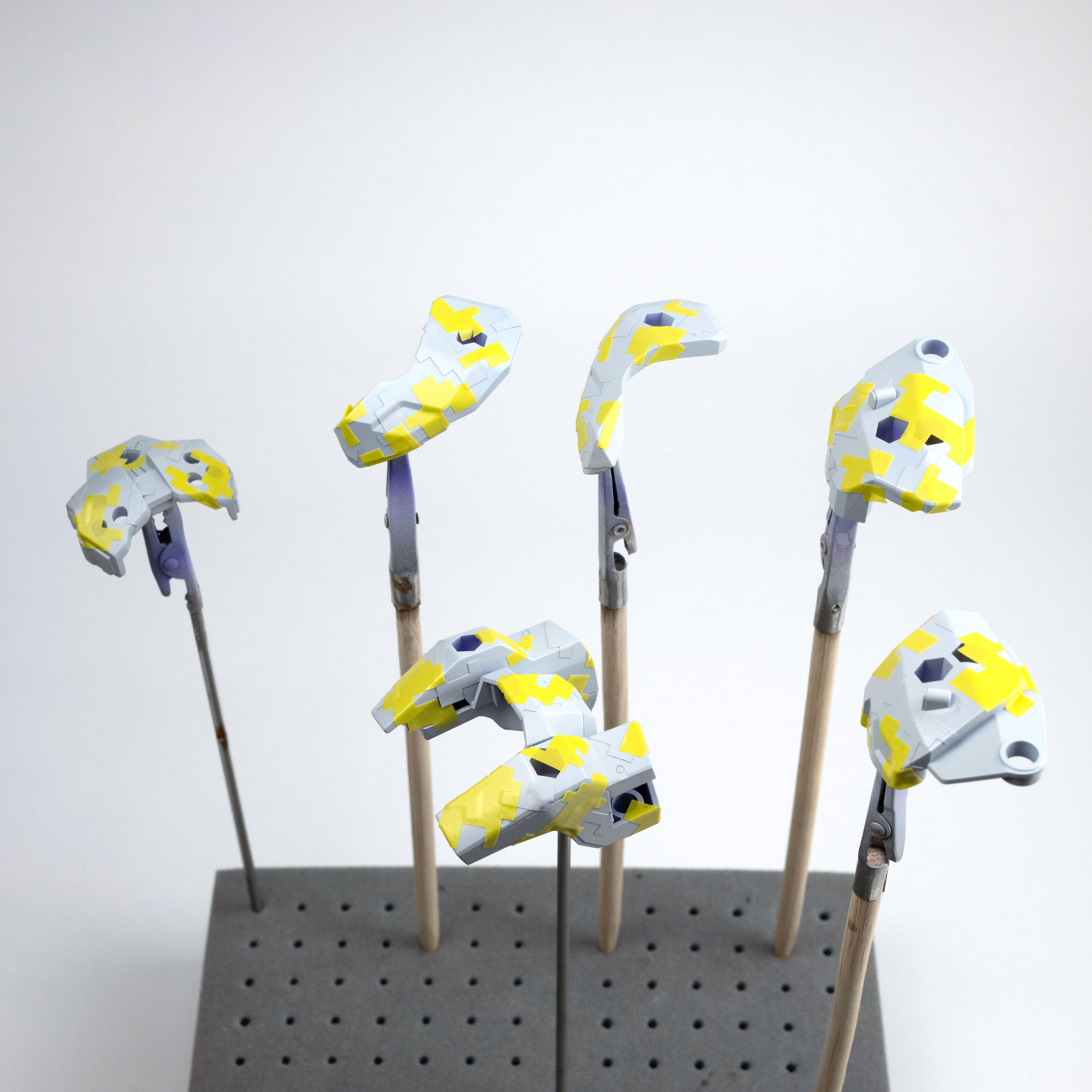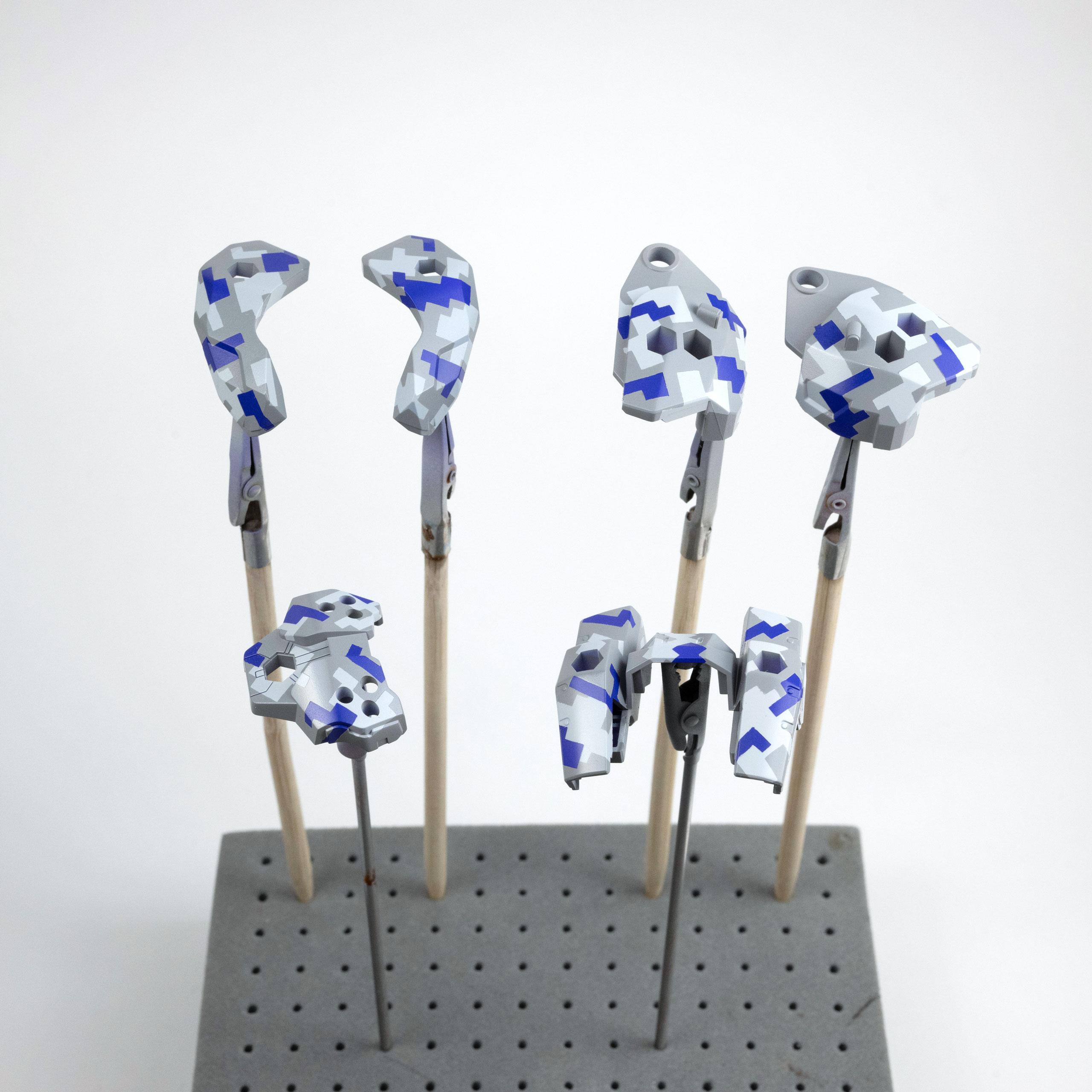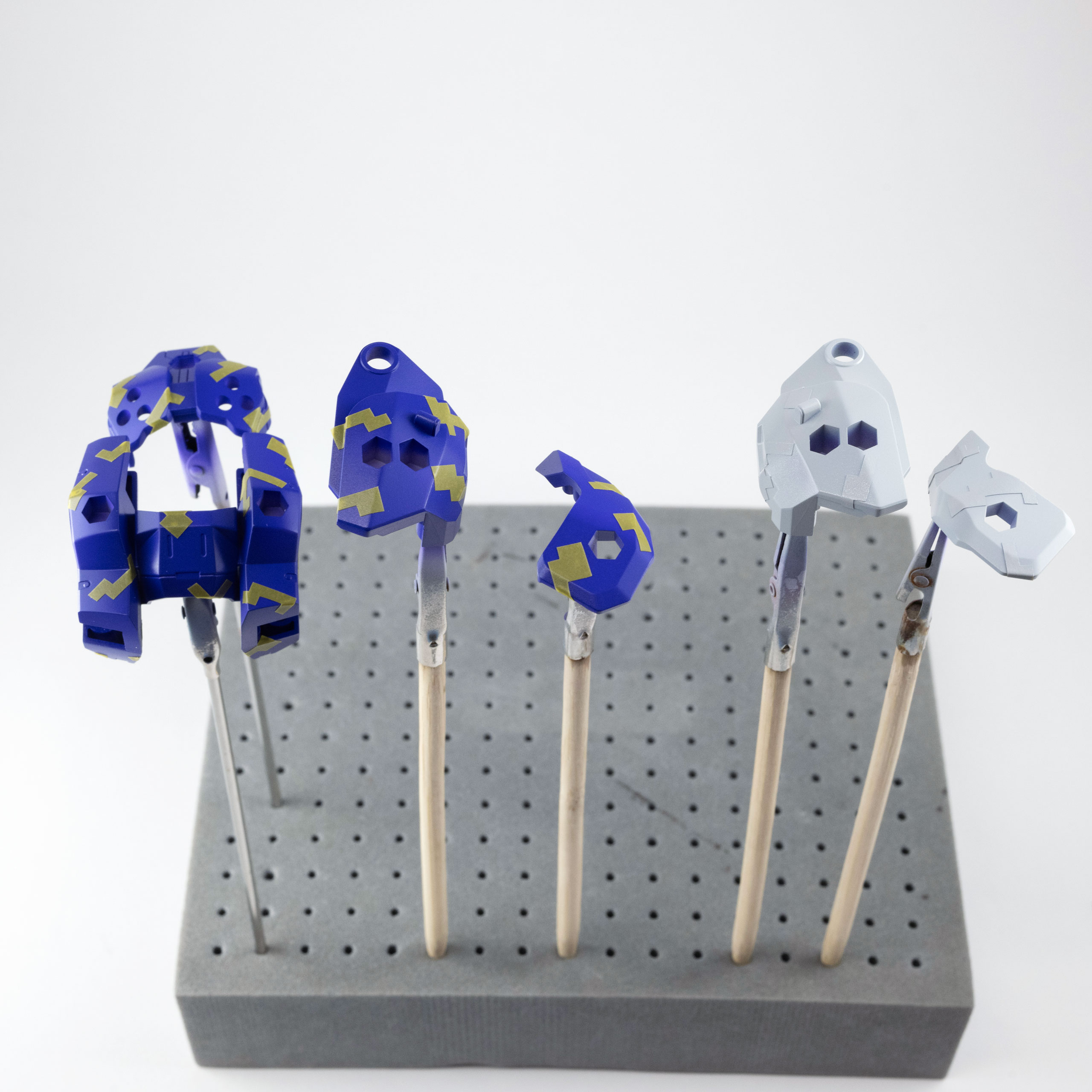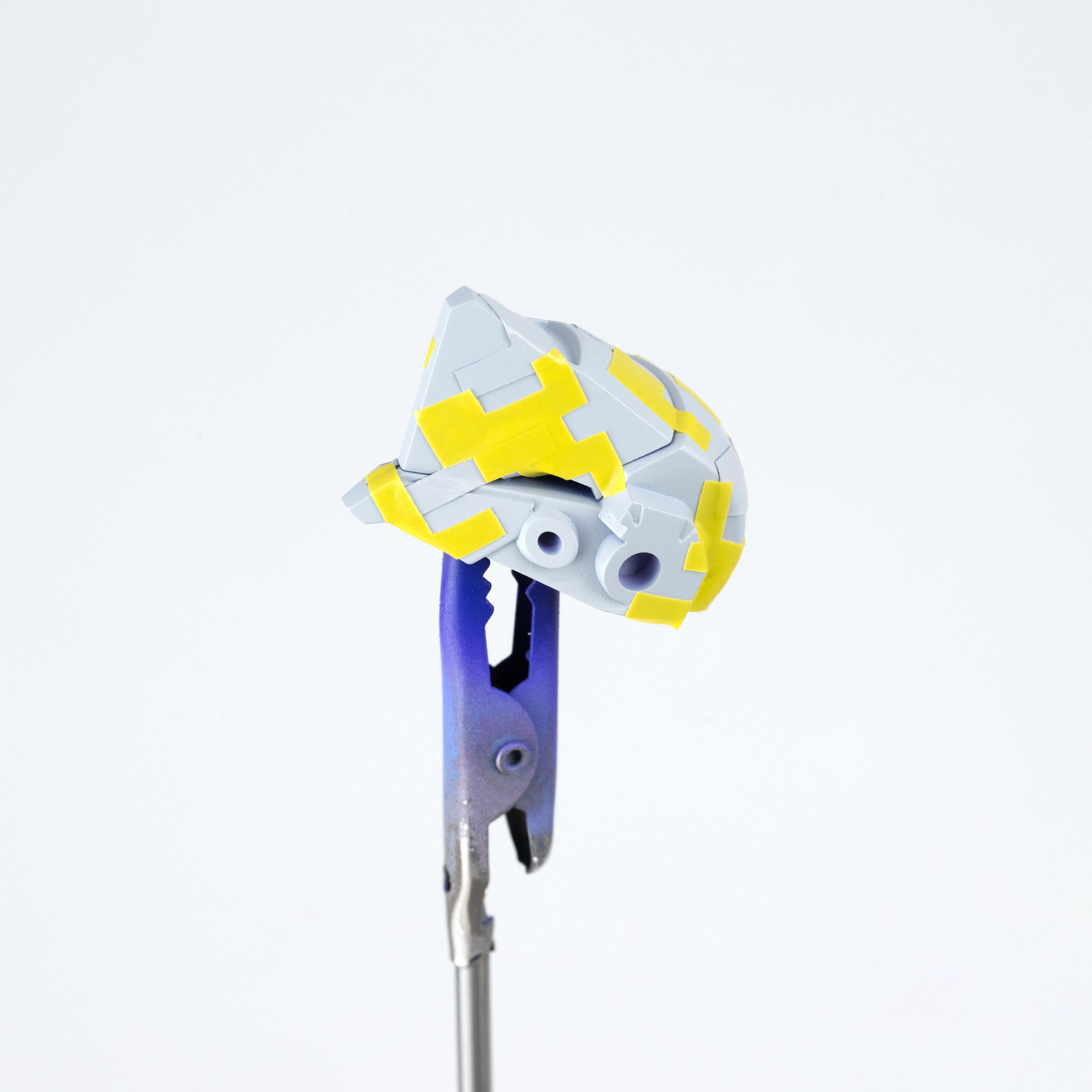 パープルヴァイオレットの塗装の下地には、薄いグレーを塗装しています。1色目のパープルヴァイオレットを塗装後に、小さい柄でマスキングします。