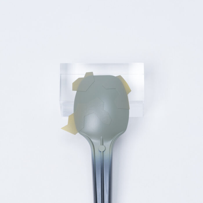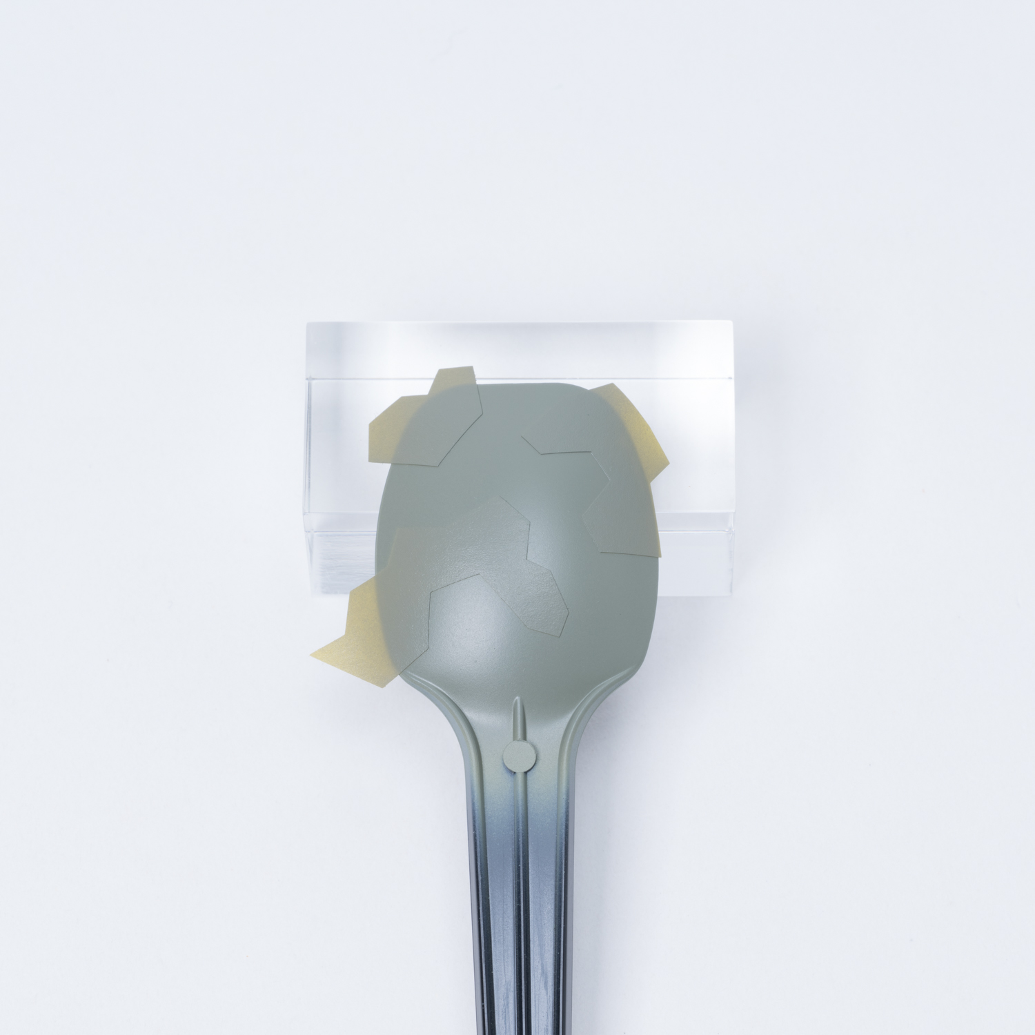 分解後のパーツに合わせてマスキングシールをカットし、それをパーツとパーツを跨ぐように貼ります。