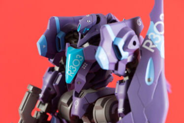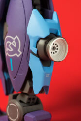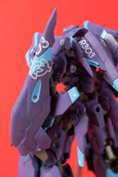 紫色が今回のメインカラー。撮影時にブラックライトで蛍光白のデカールを光らせることを想定して、胸部パーツは蛍光カラーを使って塗装しています。