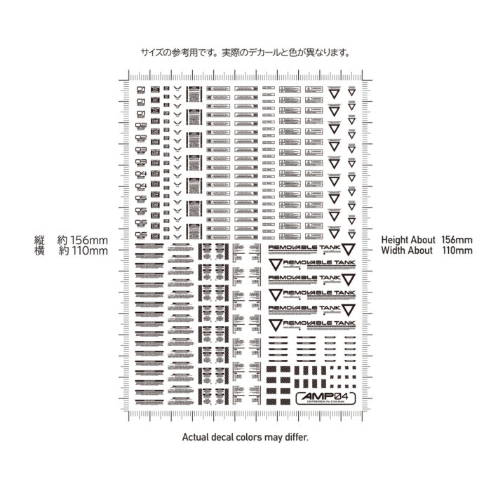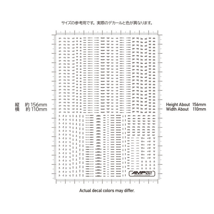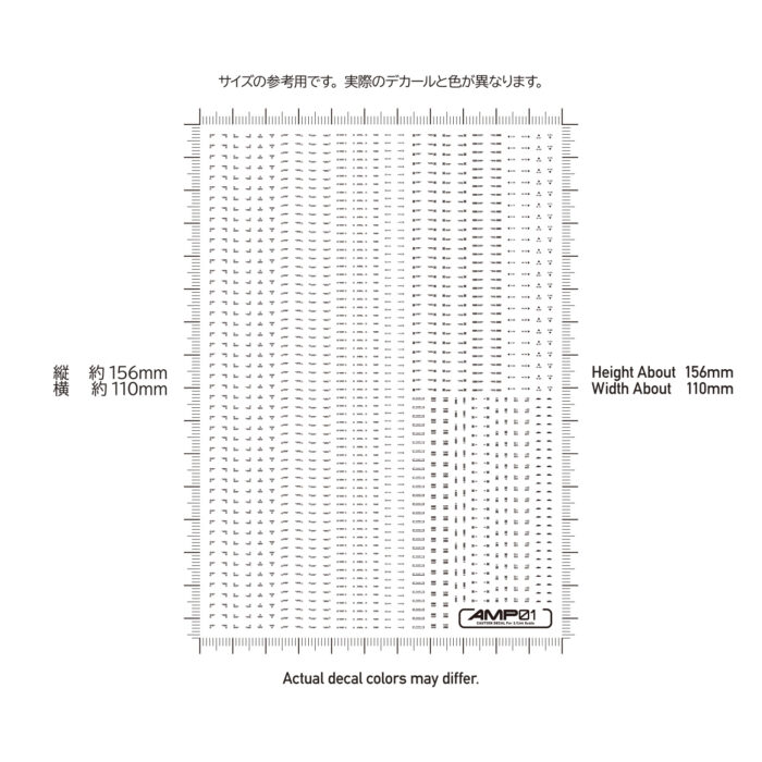 メカモデル向けの水転写式汎用コーションデカール「AMP」は、近年の細分化されたメカモデルのパーツ割に対応するため、デザインを刷新した新シリーズです。装飾を削ぎ落としたスタンダードなデザインが中心で、作品の精密感と情報量を高めます。ある程度の可読性を確保しているため、ブログの文字解説を参考に、最適な貼り付け場所を選定してください。