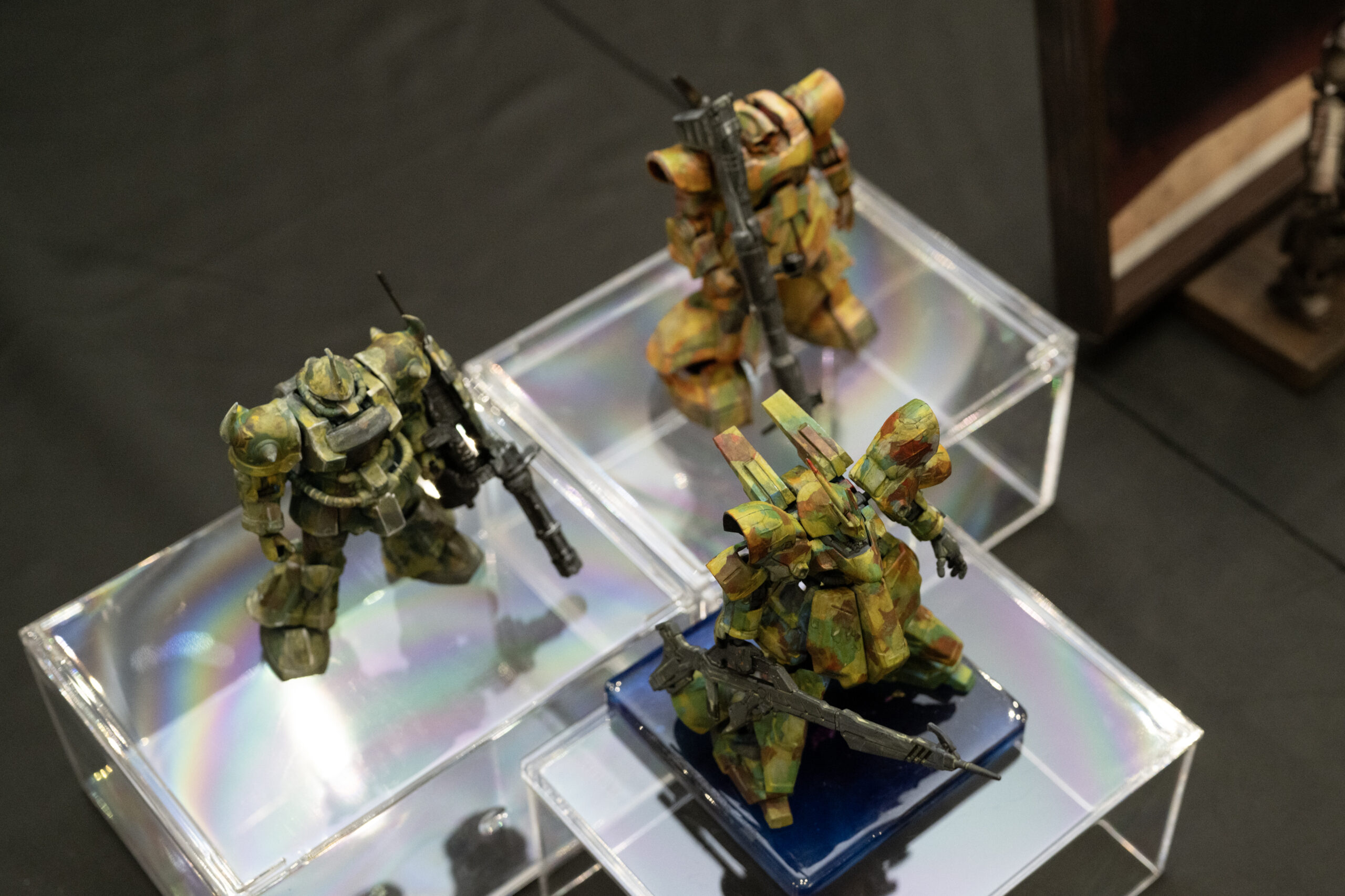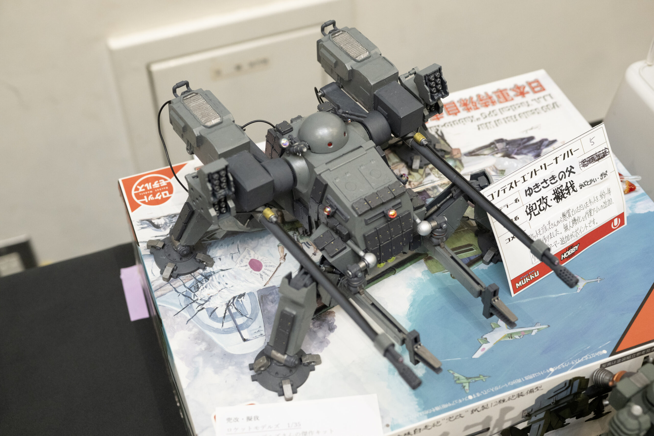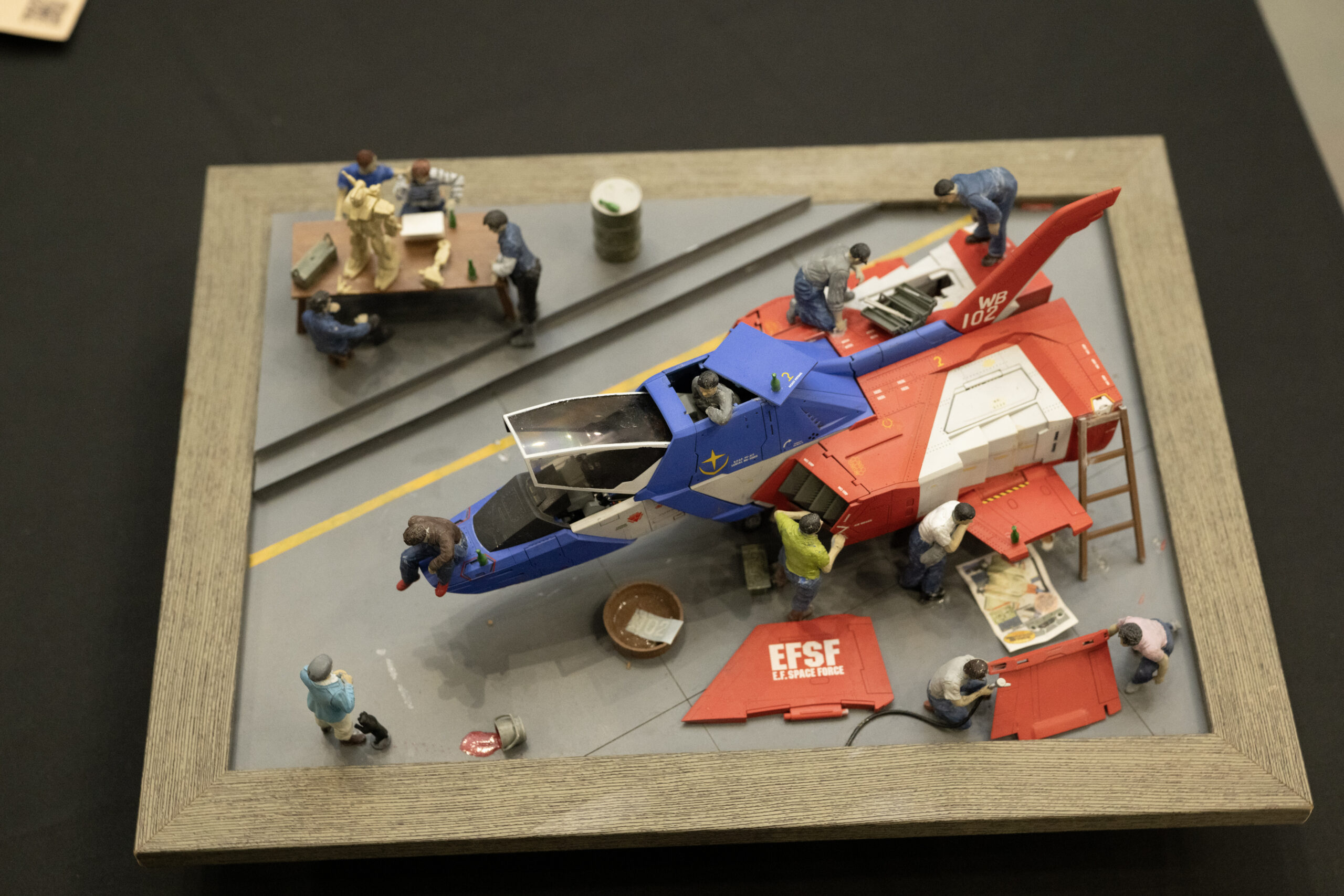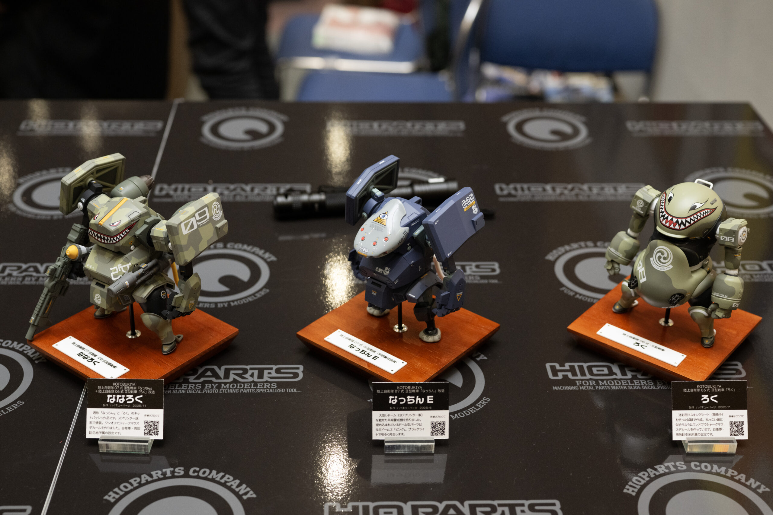 弊社は、AMPコーションデカールの一部先行販売と、カプセルトイ方式の「ハイキューガチャ」筐体を設置。ブログ掲載の作例を中心に展示しました。模型コンテストにおいては、弊社はコンテストの賞品の提供しましたが、コンテストの審査には関わっておらず、来場者投票形式のコンテストです。他ジャンルが並ぶ展示なのでどれも楽しく見れました。