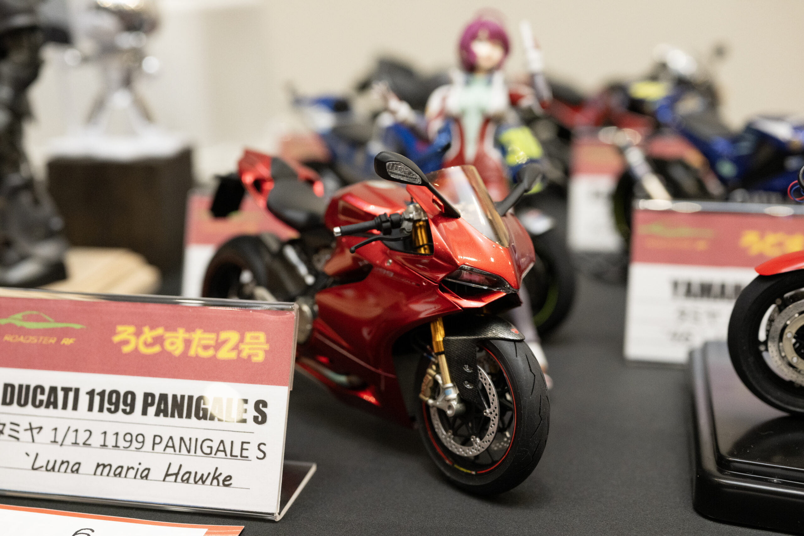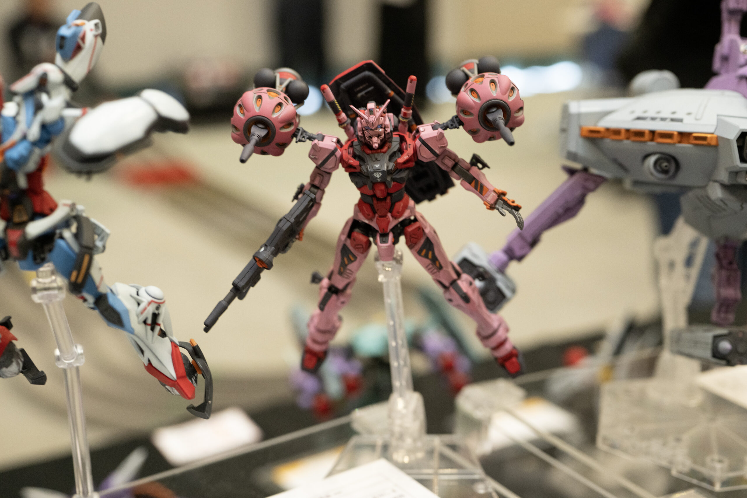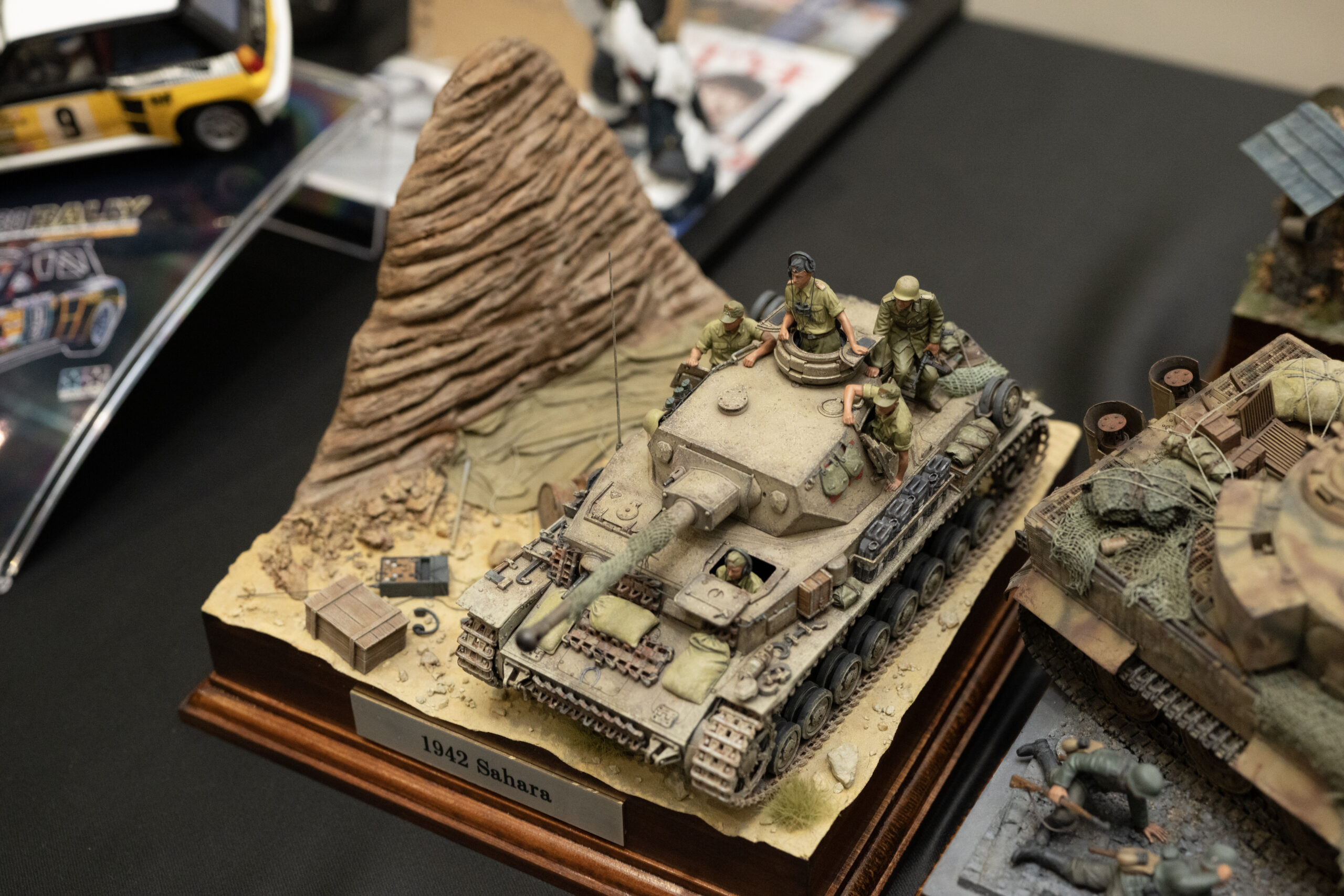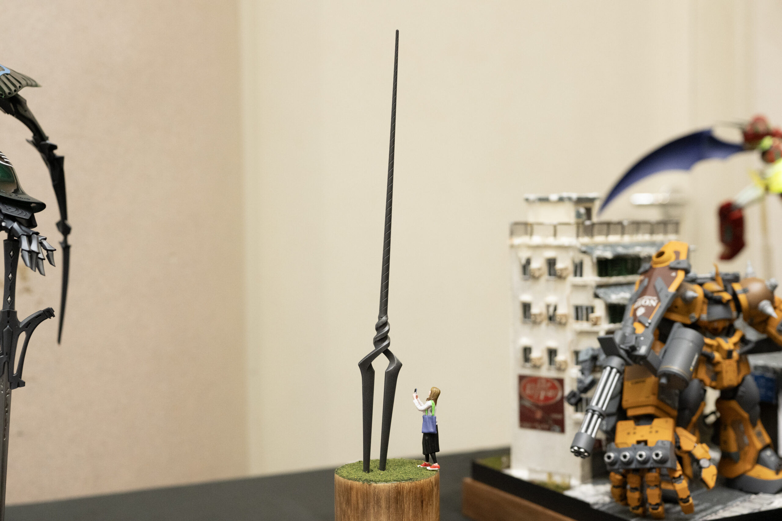 弊社は、AMPコーションデカールの一部先行販売と、カプセルトイ方式の「ハイキューガチャ」筐体を設置。ブログ掲載の作例を中心に展示しました。模型コンテストにおいては、弊社はコンテストの賞品の提供しましたが、コンテストの審査には関わっておらず、来場者投票形式のコンテストです。他ジャンルが並ぶ展示なのでどれも楽しく見れました。