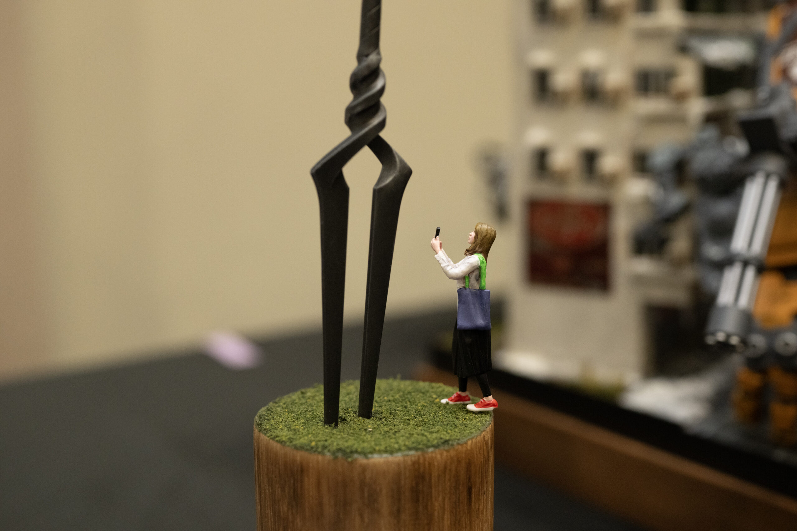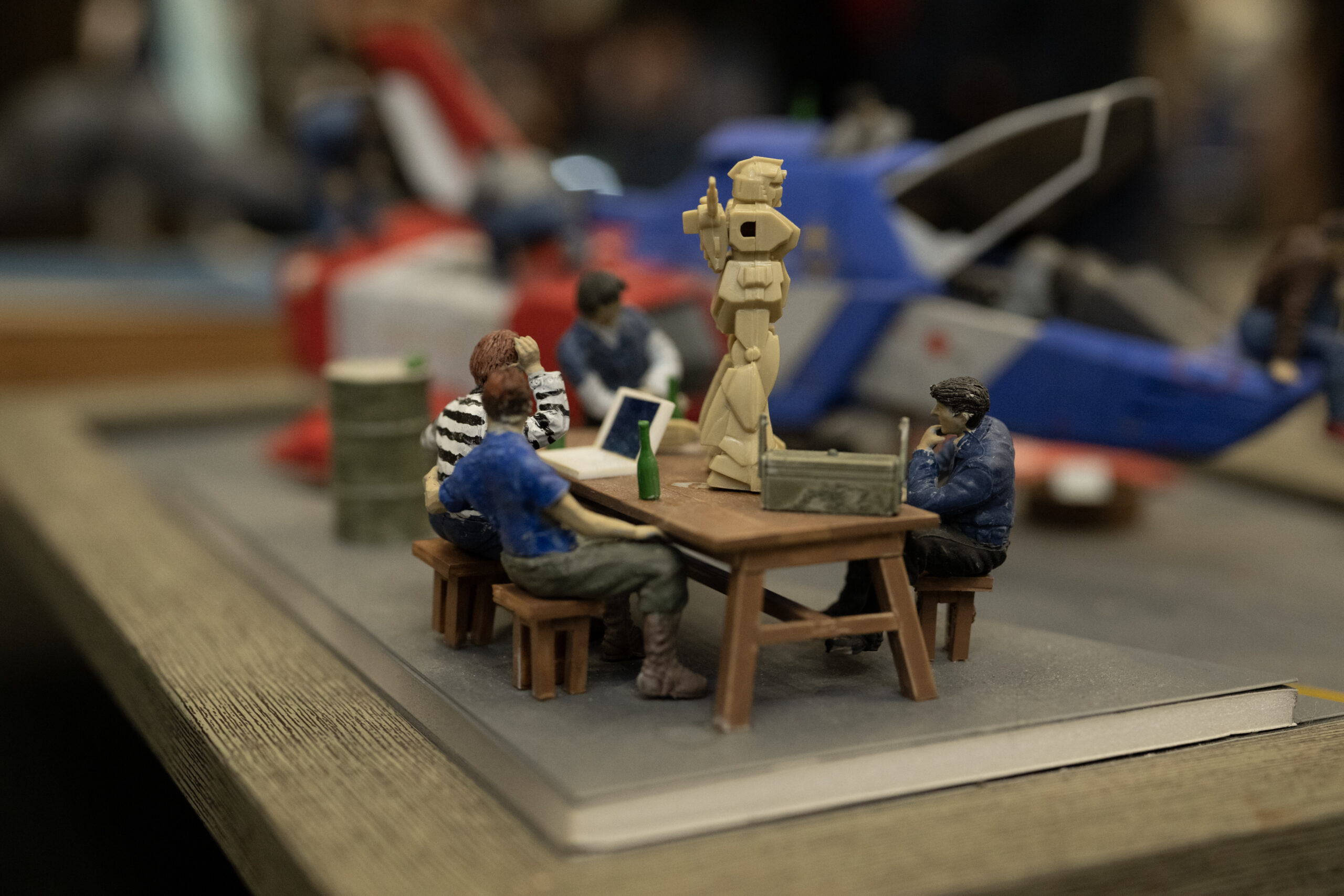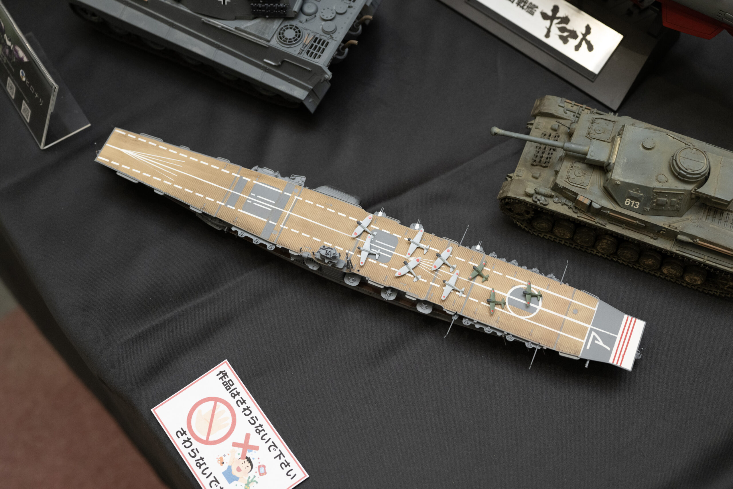 模型の展示には館内の照明が暗い(天上が高いからか今回が特別なのか)ので、撮影に苦労しました。バウンス用の板を手持ちすると良いかもですが、模型の上に落とすのが怖いので悩みます。