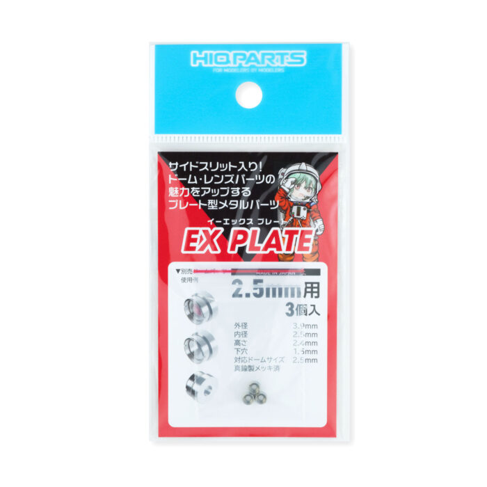 - EXプレート2.5mm(3個入) 外径 3.9mm、内径 2.5mm、高さ 2.4mm、下穴 1.5mm、対応ドームサイズ 2.5mm