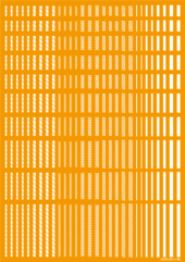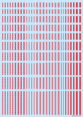 SFメカモデルのディテールアップに最適な、汎用のラインデカール。SFメカモデルからレーシングカーのデコレーションまで、模型を引き立てる線幅や柄のバランスを追求したカスタム専用デカールです。斜線を中心に4柄収録。印刷はシルクスクリーン印刷で、色濃い印刷が特長です。
