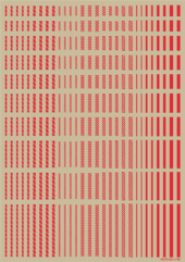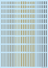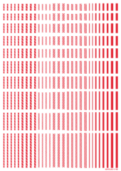 「2」では斜線のバリエーションが3種+ベタ1種。実際の印刷に近い環境で貼り付けテストを何度も行いまして、幅ごとに見栄えのよい太さや線幅などに調整してあります。実際に貼ったときの見栄えを目標点にしていますので、幅や長さの比率が一定ではありません。わざと違うものですので印刷ずれではありません。