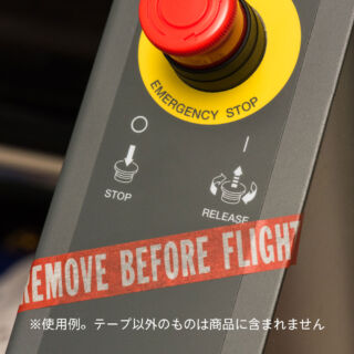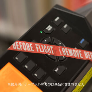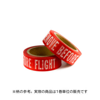 モデラー向けにも装飾用マスキングテープが欲しい!との思いで、戦闘機のフラッグ風マスキングテープを企画しました。駐機中の戦闘機などに付けてある「REMOVE BEFORE FLIGHT」、「発進前に外せ」のフラッグをモチーフにした装飾用のマスキングテープ(紙テープ)です。数多くの実物からリサーチした、文字の印刷のインク溜まり具合などを再現したディテールに力を入れたテープです。「REMOVE BEFORE FLIGHT」のフラッグは安全ピンなど、外し忘れを防ぐための目印として、使用されています。