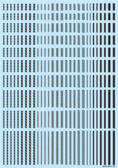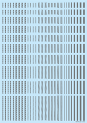 SFメカモデルのディテールアップに最適な、汎用のラインデカール。SFメカモデルからレーシングカーのデコレーションまで、模型を引き立てる線幅や柄のバランスを追求したカスタム専用デカールです。斜線を中心に4柄収録。印刷はシルクスクリーン印刷で、色濃い印刷が特長です。