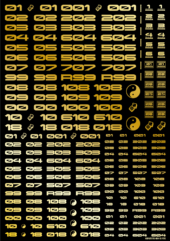 スポンサーロゴデカールや、トライバルロータスデカール、タトゥーデカールなどほかのシリーズと同じカラーで印刷されています。箔印刷ではなく、インクの金色、銀色です。レーシングカーなどのカスタムにオススメです。