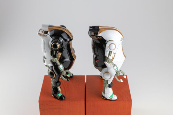 流線形でまるっこいウィーゴを”すぽーつ”の名にふさわしい、ロータスのF1マシン”ロータス・79″のカラーを真似て黒金カラーで塗装。もう一体はカラーを反転して白金で塗装しました。