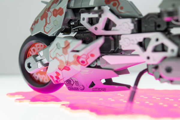 比較ができるように2種類の環境で撮っています。蛍光アクリルを通してピンク色の光が反射しているものと、蛍光アクリル台座を敷かなかったもの。